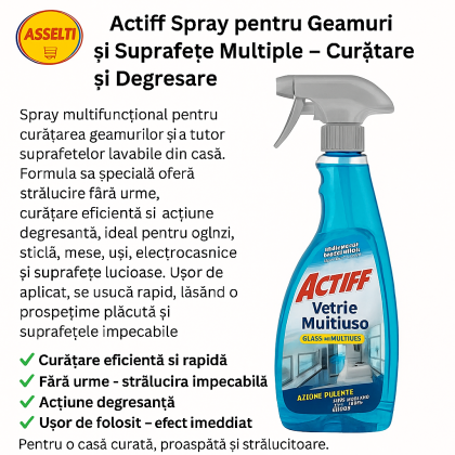 Actiff Spray pentru Geamuri și Suprafețe Multiple – Curățare și Degresare,750ml