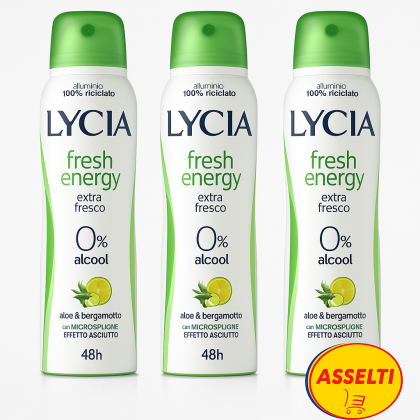 Deodorant spray LYCIA Fresh Energy – Aloe & Bergamotto, 48H, fără alcool,3x150 ml