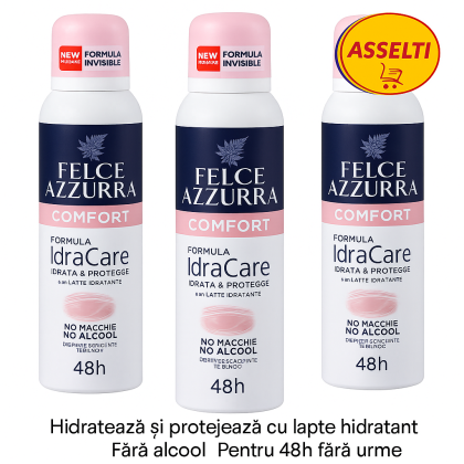 Deodorant Spray Felce Azzurra Comfort cu Lapte Hidratant, 3x150 ml