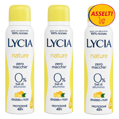 Deodorant spray LYCIA Nature - Ghimbir și Yuzu, 48h protecție,3x150 ml