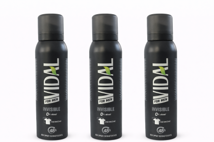 Set 3 x Deodorant Spray VIDAL For Men Invisible, 150 ml, 0% alcool, protecție 48h