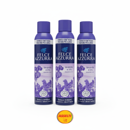 Set ASSELTI® Origine Italia – 3 x Felce Azzurra Spray Ambienti Lavanda e Iris 250 ml, odorizant pentru casă cu parfum elegant și persistent