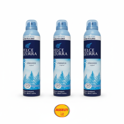 Set ASSELTI® Origine Italia – 3 x Felce Azzurra Spray Ambienti Classico 250 ml, odorizant cu parfum proaspăt și inconfundabil