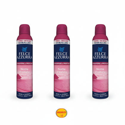 Set ASSELTI® Origine Italia – 3 x Felce Azzurra Spray Ambienti Notte d’Estate 250 ml, odorizant cu parfum cald și romantic de vară