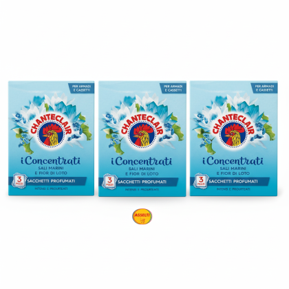 Set ASSELTI® Origine Italia – 3 x Chanteclair I Concentrati Sacchetti Profumati, Sali Marini & Fiore di Loto, parfum intens pentru dulapuri și sertare