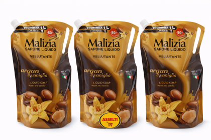 Set 3 buc Malizia Săpun Lichid Argan & Vanilie – Rezervă 1 L, efect catifelant