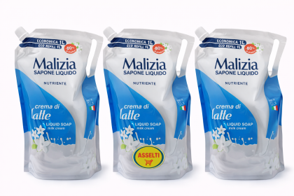 Set 3 buc Malizia Săpun Lichid Cremă de Lapte – Rezervă 1 L, nutritiv